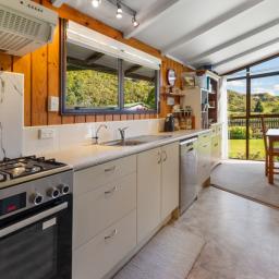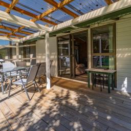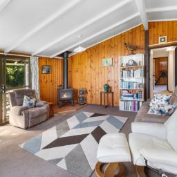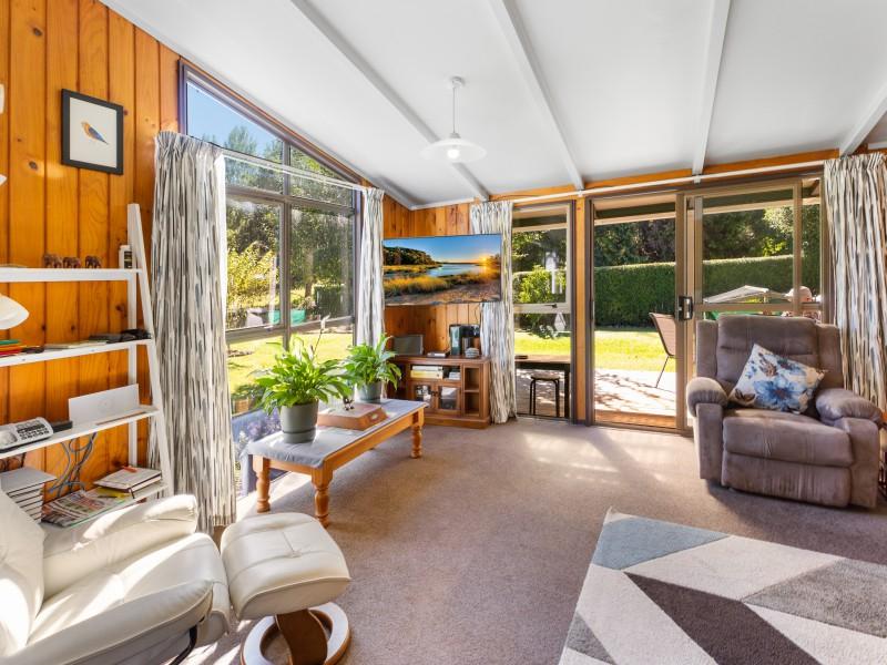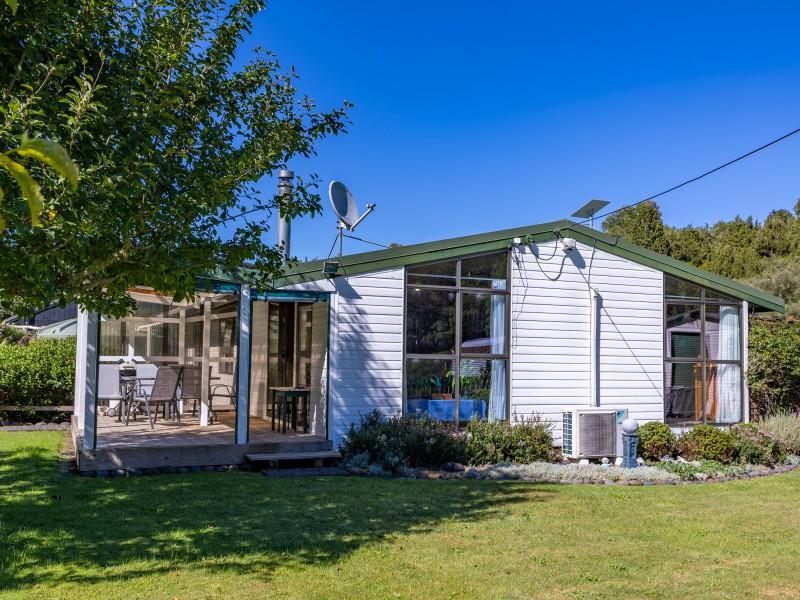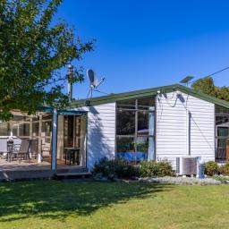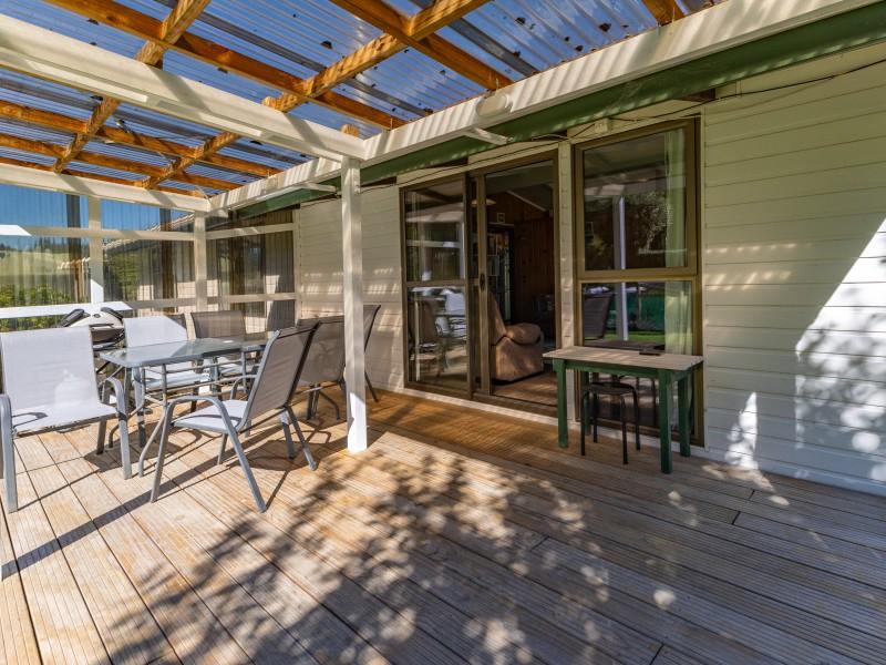 The welcoming Initial home is 91sqm (more or less) with a huge carport at the back door. The current owners have had the house double glazed, it is fully insulated and heated by a wood burner and an air conditioner, so it’s extra cosy in winter and the aircon keeps the cottage cool when it gets extra hot in the summer. There are three decent sized double bedrooms, all with built-in wardrobes, and a modern bathroom. The living area spills out on to a covered patio with a lovely outlook to the garden. In addition there is a sleepout with toilet and shower facilities.