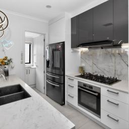 The second level forms the heart of the home, showcasing a sun-filled open-plan living and dining area, complemented by a sleek modern, designer kitchen and an additional second kitchen/butler's pantry, providing flexibility for multi-generational living and hosting friends and family.