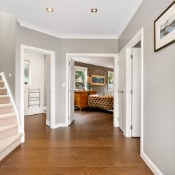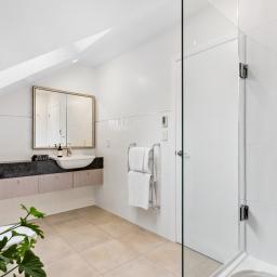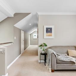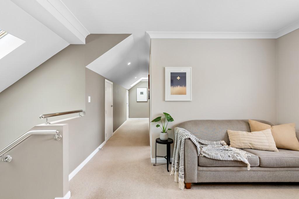 Upstairs, four bedrooms provide comfort and privacy. The main suite overlooks the park, offering a serene spot for morning coffee or sunset views, complete with a walk-in wardrobe and luxurious ensuite. A well-appointed bathroom services the other bedrooms, while generous walk-in storage ensures every need is met.