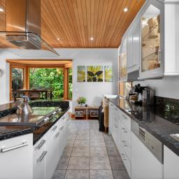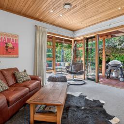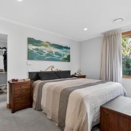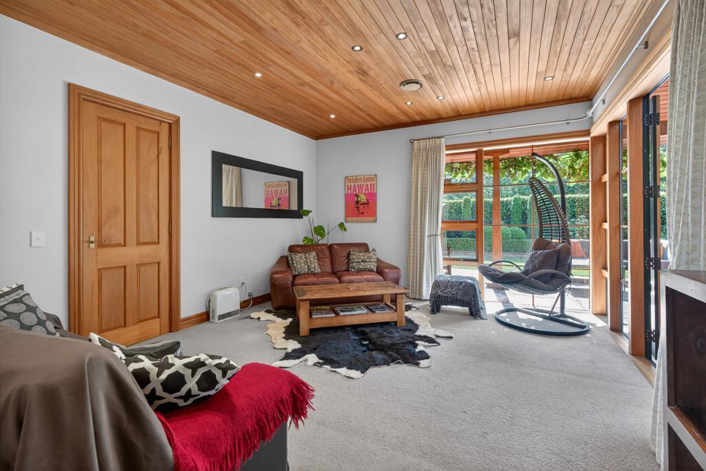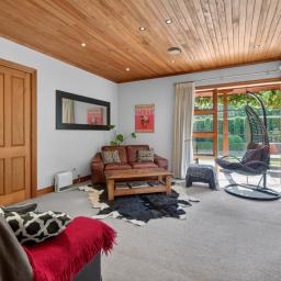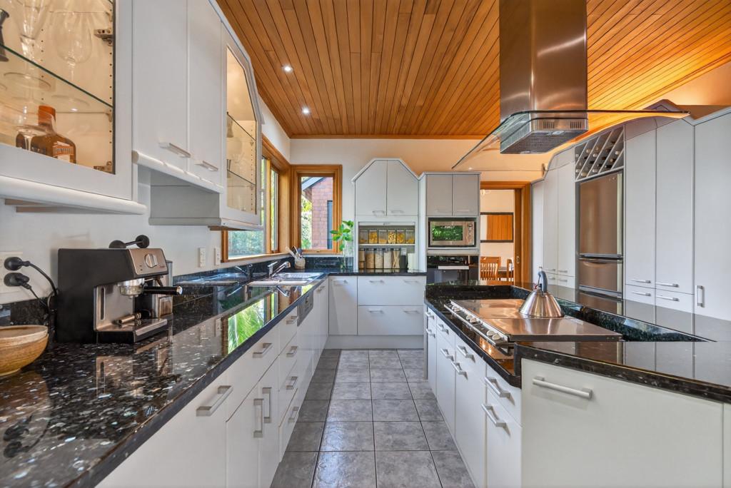 Throughout the home, gas central heating, full double glazing, an alarm system, premium smartwood and aluminium joinery, and touches of Fijian kauri detailing across the kitchen, dining, and living ceilings combine to deliver effortless year-round comfort, security, and timeless elegance. A double internal access garage with rear tilt door, along with a garden shed, completes the offering.