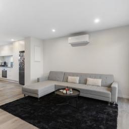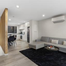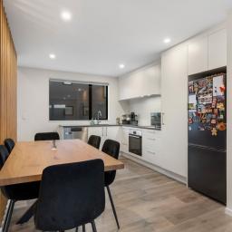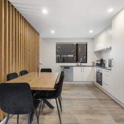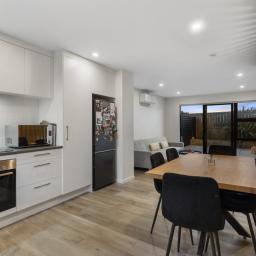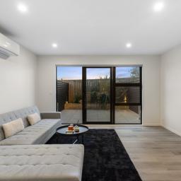 The open plan living and dining area is bright, welcoming and quietly positioned, flowing seamlessly to a private, sun-soaked patio garden. Easy-care and thoughtfully designed, it's the perfect setting for relaxed evenings, weekend entertaining, or simply unwinding without the distraction of road noise.