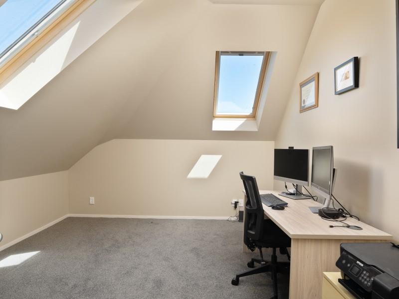 The flexible layout is perfectly suited to modern family life, featuring four bedrooms, a rumpus room and a dedicated home office – all with ample storage. The ground floor master suite offers a peaceful haven, complete with its own heat pump, a walk-through wardrobe and ensuite, while the upper level is enhanced by skylights, generous proportions and a large family bathroom.