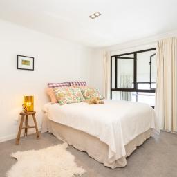 - Light filled open plan living, framed by double height, double glazed steel windows and solid matai floorboards