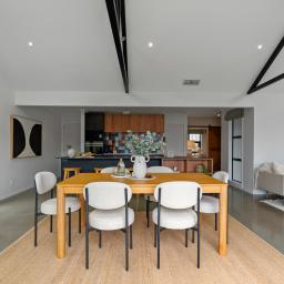 Positioned on a flat, elevated section, the home is flooded with natural light, creating bright, uplifting spaces from morning through to evening. The floor plan has been cleverly arranged with living at one end and bedrooms at the other, offering separation, privacy and easy flow for busy households.