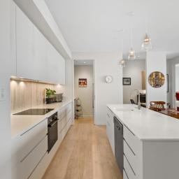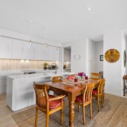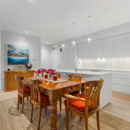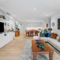 From the moment you enter, the apartment reveals a calm and balanced interior defined by natural light, clean architectural lines and generous proportions. Open plan living connects seamlessly with a well appointed kitchen and dining area, creating a space equally suited to quiet daily living and relaxed entertaining.