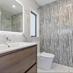 - LED mirrors adding a sleek, modern touch