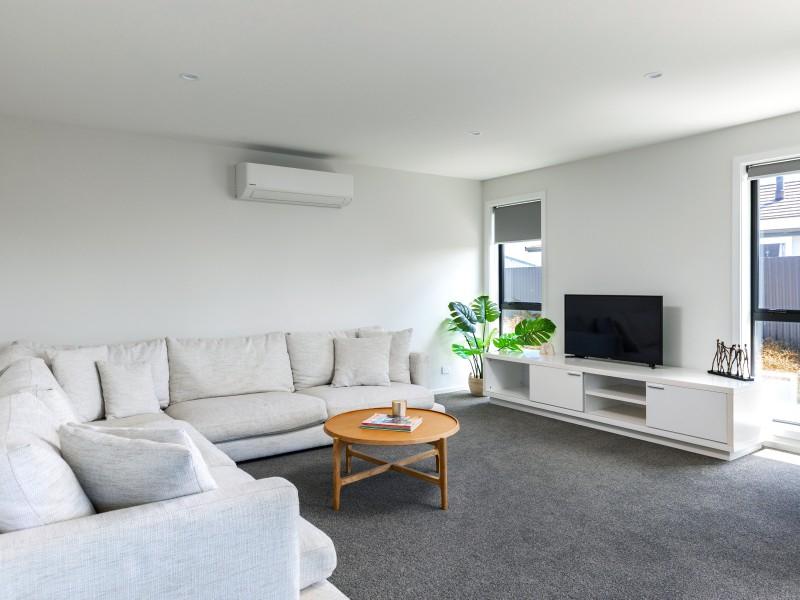 Positioned on a 300sqm (more or less) freehold section, the 137sqm (more or less) floor plan has been thoughtfully laid out for effortless living. Step inside and you’re welcomed by light-filled open plan living, dining and kitchen spaces, perfectly positioned for sun. Clean lines and a practical layout create a home that feels larger than its footprint suggests. A heat pump provides year round comfort, while fibre internet keeps you connected.