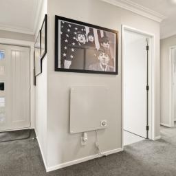 This level also offers two bedrooms, both with built-in wardrobes, a well-appointed bathroom with separate toilet, and excellent storage throughout the wide hallway, something buyers will really appreciate. Comfort and efficiency are well covered here too. Double glazing helps retain the heat, a heat pump keeps things cosy through the cooler months, and the solar system assists with hot water for efficiency, a thoughtful addition for modern living.