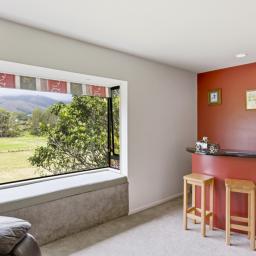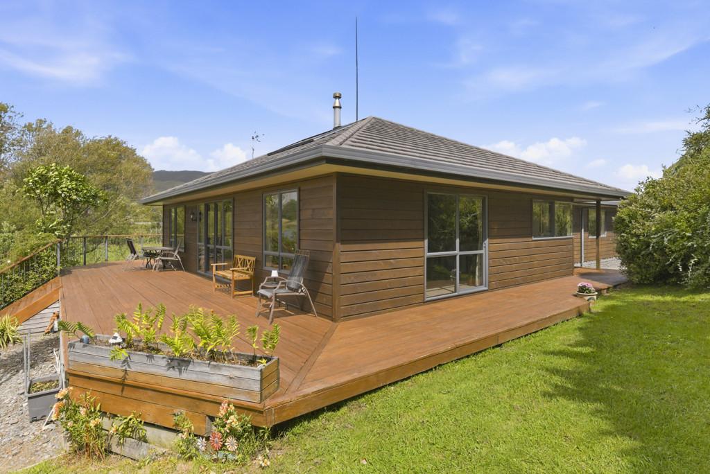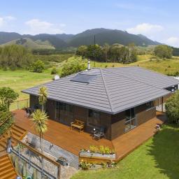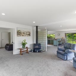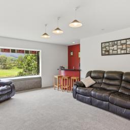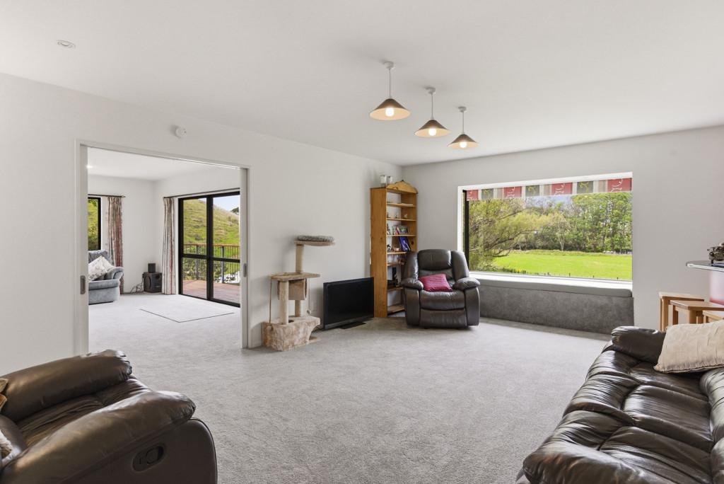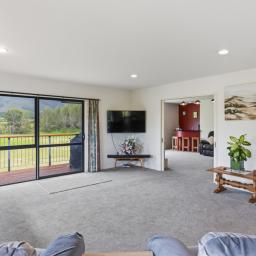 The solid timber weatherboard house is built in the perfect location, elevated to enjoy panoramic views over lush green pasture to the Tararua Ranges beyond. This home features exceptionally spacious open plan living with wrap around doors and windows and direct access to the outdoor living areas. The upgraded kitchen is equipped with a double oven, gas hob, and recently installed new flooring.