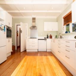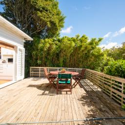From the kitchen, French doors lead out to a sunny, private and sheltered deck with views across to Northland - perfect for those morning coffees or having friends over for lunch.