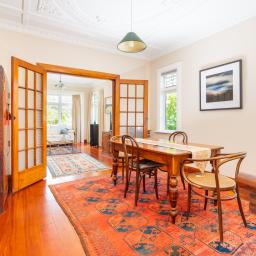 The elegant entrance reveals the start of several period features throughout - matai floorboards, lead light windows, beautiful high stud ornate Carrara ceilings and rimu fixtures.