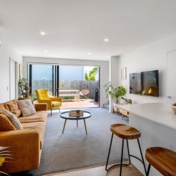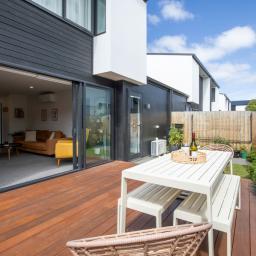 Large doors open seamlessly out to a beautiful kwila deck - an inviting extension of the living area and the perfect spot for summer evenings, morning coffee, or hosting friends.