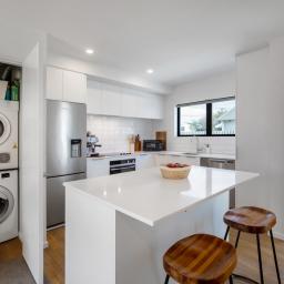 Built by Boutique Living, this thoughtfully designed two-storey home delivers modern comfort with a smart, functional layout. Step inside and you're welcomed into a light-filled open plan kitchen, living and dining space that forms the heart of the home. The kitchen is sleek and practical, perfectly positioned for both everyday living and entertaining.