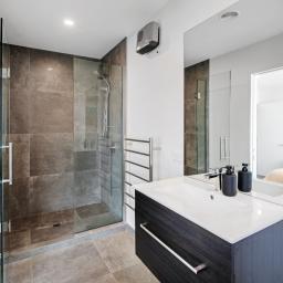 Upstairs, you'll find two well-proportioned bedrooms, each complemented by its own tiled bathroom, offering privacy and flexibility for guests, flatmates or professionals wanting their own space. The tiled finishes add a touch of luxury and durability, enhancing the modern feel of the home.