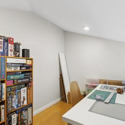 - Separate front living room with floor to ceiling bookshelves
