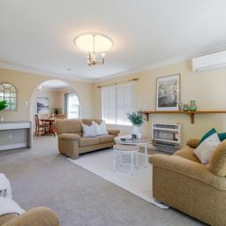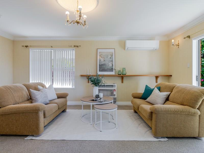 Inside, the home features three well-proportioned bedrooms, a tidy bathroom, and a spacious lounge fitted with a heat pump for year-round comfort. A separate dining area provides excellent functionality for family living and entertaining, while natural light enhances the warm and welcoming atmosphere throughout.