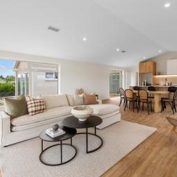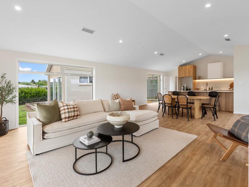 Step into this brand new, effortlessly modern home, where space, light, and contemporary elegance come together in perfect harmony. The journey begins in the heart of the home - a stunning timber kitchen with a scullery that flows seamlessly into the generous living area, creating an ideal setting for family life or entertaining. Large windows and high ceilings fill the space with natural light, while the living area opens onto private outdoor entertaining spaces, offering a seamless connection to the outdoors and capturing breathtaking views of Mt Pirongia.