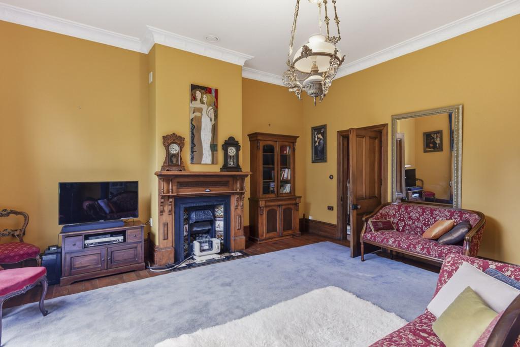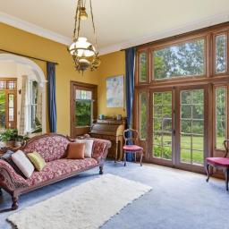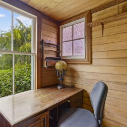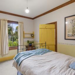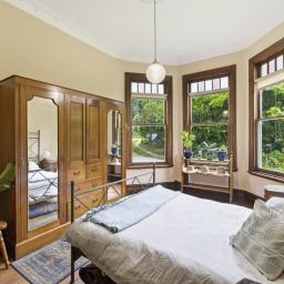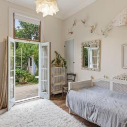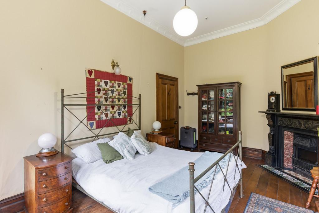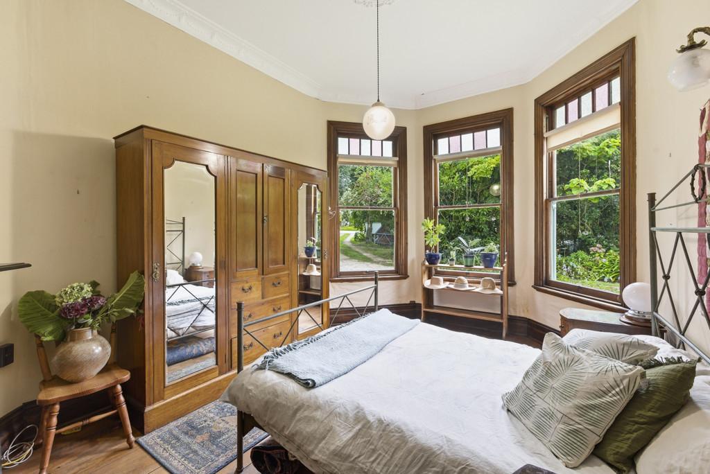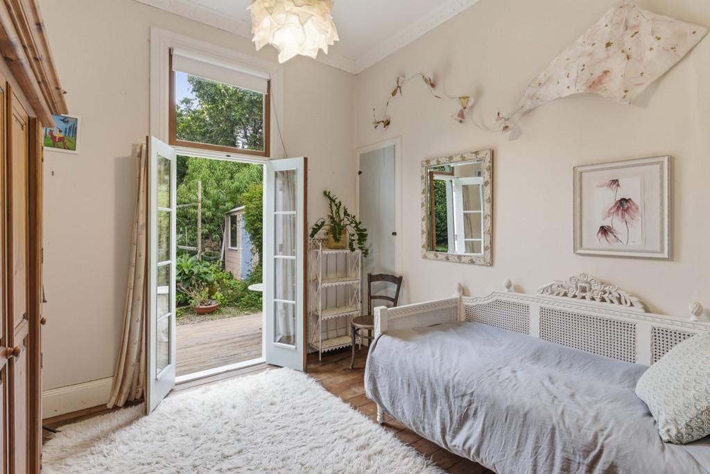The elevated stud ceilings contribute to the impressive atmosphere of this refined residence, which showcases native timber joinery, sash windows, elegant architraves, scotia, and skirting boards. Each of the three double bedrooms offers distinctive features, including French doors opening onto a sunlit deck, a bay window, or an ornate fireplace. One is graced with its own cosy office or an optional walk in wardrobe