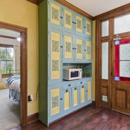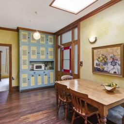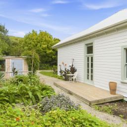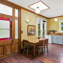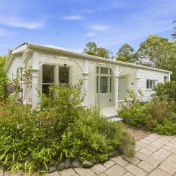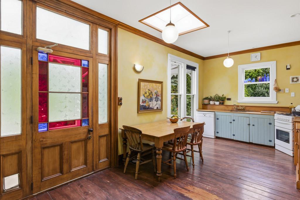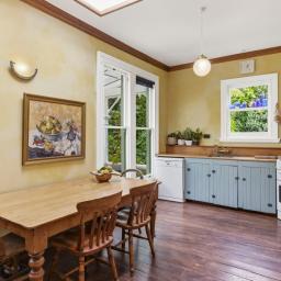 The separate kitchen retains the vintage charm with character 1950s timber bench top, gas cooking and artistic storage cupboards. Gather around the dining table or slip out the back door to the private sheltered deck and garden of herbs and flowers.