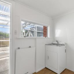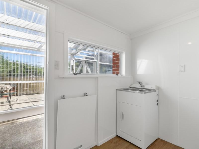 A covered and secure back porch flows from the kitchen providing a sheltered, practical space that works beautifully for extra storage or drying washing. The separate laundry adds further convenience.