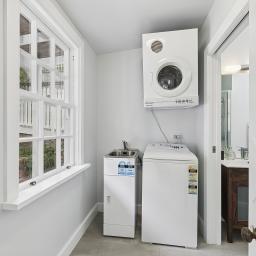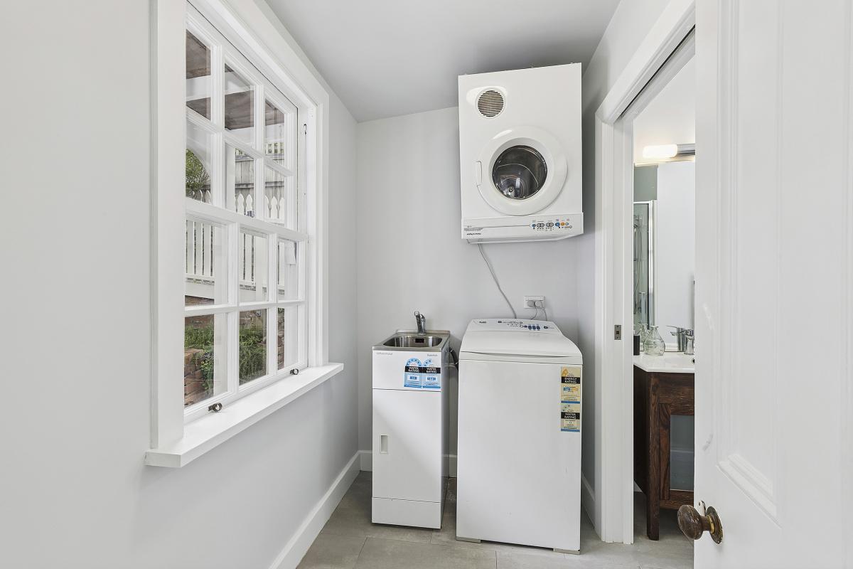 - Two bathrooms including one with a bath, with laundry facilities incorporated for everyday practicality