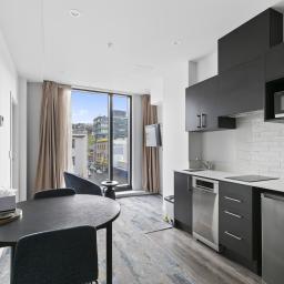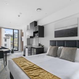 This 34sqm^ studio apartment offers a stylish solution to city living that's secure, central, and easy-care. Located on the residential third level of the Ramada Hotel, it faces northwest for prolonged sun and natural light while in the heart of downtown to enjoy the hive of activity which Wellington offers. Rented to the hotel for 15 years - with the right of renewal, this is a hands-off investment that guarantees reliable income.
