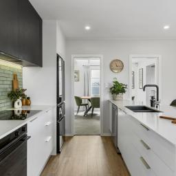 Living spaces are well-proportioned and light-filled, flowing effortlessly between lounge, dining and a stunning new kitchen designed to anchor everyday living and entertaining. French doors extend the living areas to a sheltered, low-maintenance courtyard, creating a seamless indoor-outdoor connection ideal for relaxed hosting or quiet evenings at home.