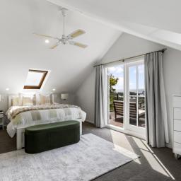 Accommodation is generous and flexible. The upper level is dedicated to an impressive master suite, complete with walk-in wardrobe, ensuite, office space and a large balcony capturing expansive views. On the main level, two additional bedrooms are complemented by a modern family bathroom, while spaces provide excellent work-from-home options or room to adapt as family needs evolve.