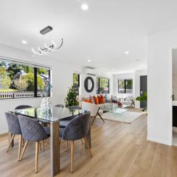 * Spacious open-plan living with designer kitchen and quality modern appliances.