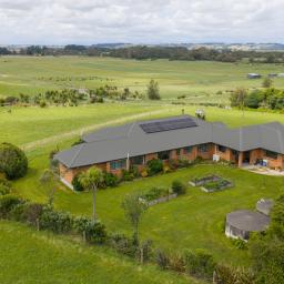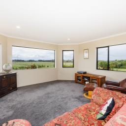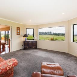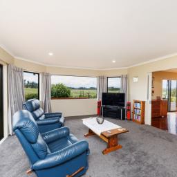 Located midway between Marton and Bulls, the spacious four bedroom + office home sits on an elevated site 800m off the road, offering outstanding views from the multiple, northfacing living areas and deck, over the property.