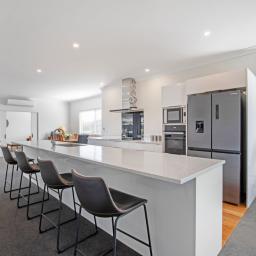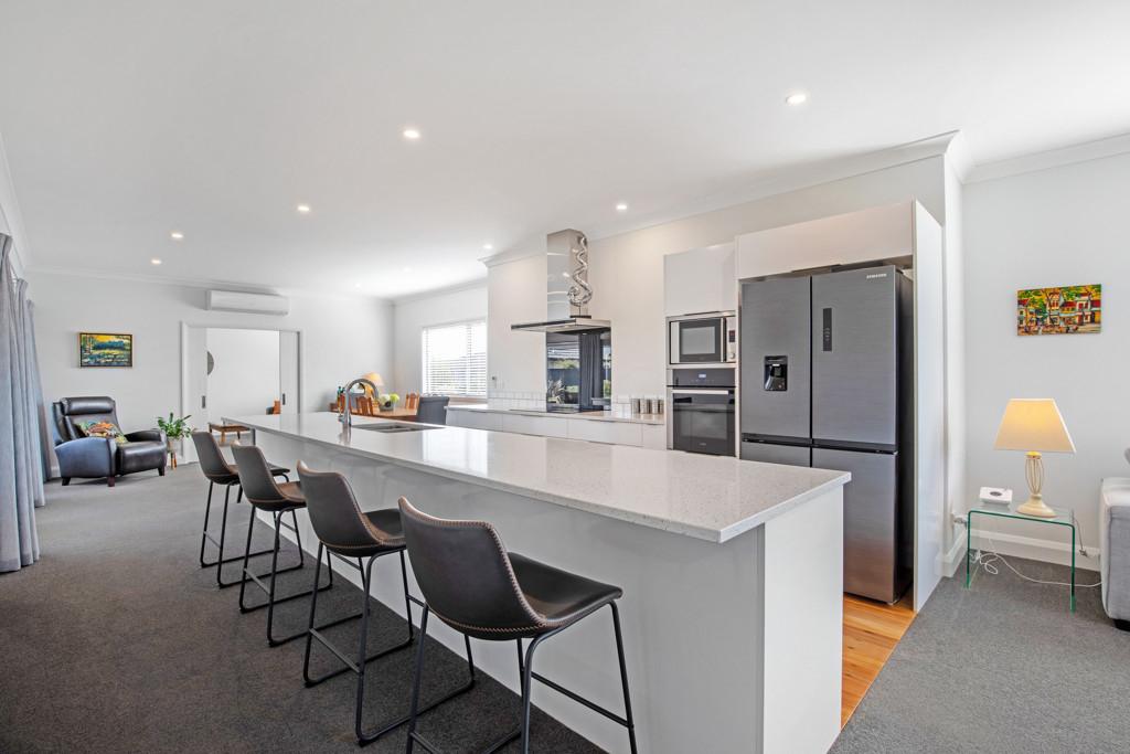 At its heart lies a stunning kitchen anchored by an impressive 4.4-metre stone island - a natural gathering place for morning coffees, shared meals, and celebrations with friends. Hidden discreetly behind is a generous walk-in pantry, keeping everything beautifully organised while maintaining clean lines and effortless style.