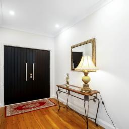 A wide, spacious hallway connects the additional bedrooms and study, enhancing the sense of openness and offering practical accessibility, including suitability for wheelchair access.