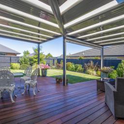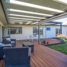 The living areas flow seamlessly outdoors, where a sun-soaked deck stretches along the living and lounge spaces and continues outside the master suite - creating a beautiful connection between inside and out. The covered Stratco Outback sunroof, complete with electric side screen, ensures year-round entertaining.