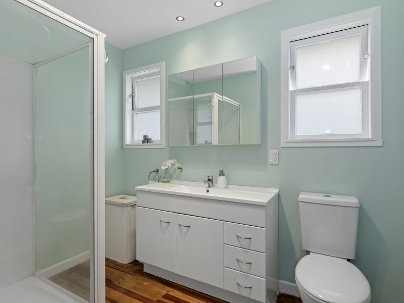 The bathroom has been refreshed with a new vanity top and toilet, while insulation in the walls, underfloor, and ceiling, combined with a heat pump and DVS system, ensures warmth, dryness, and comfort throughout the seasons.