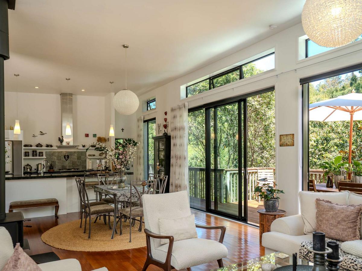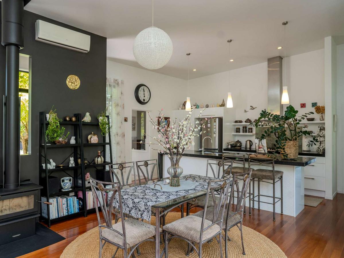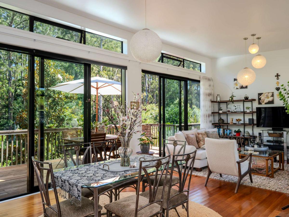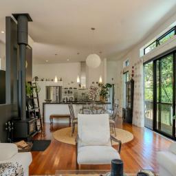 The large open plan living is full of light, with large windows on two sides, you get the feeling of sitting in the bush and it certainly sets this home apart from the everyday town residence.