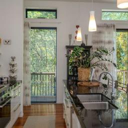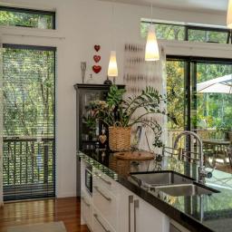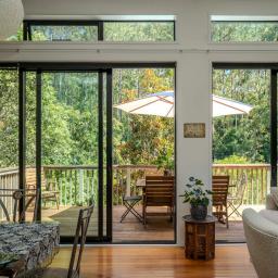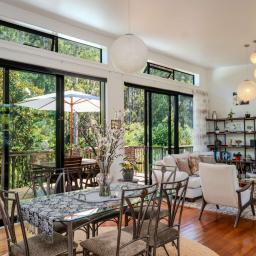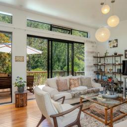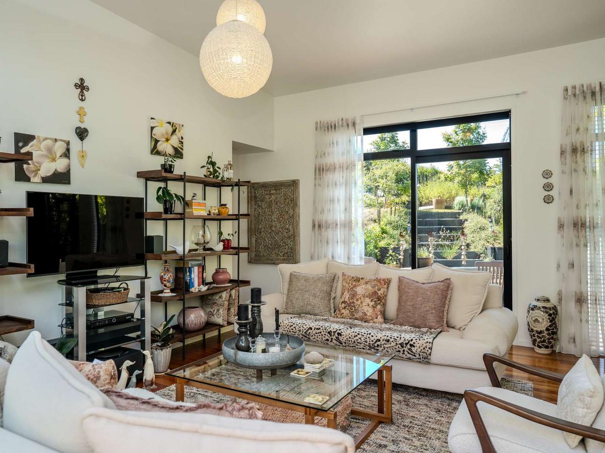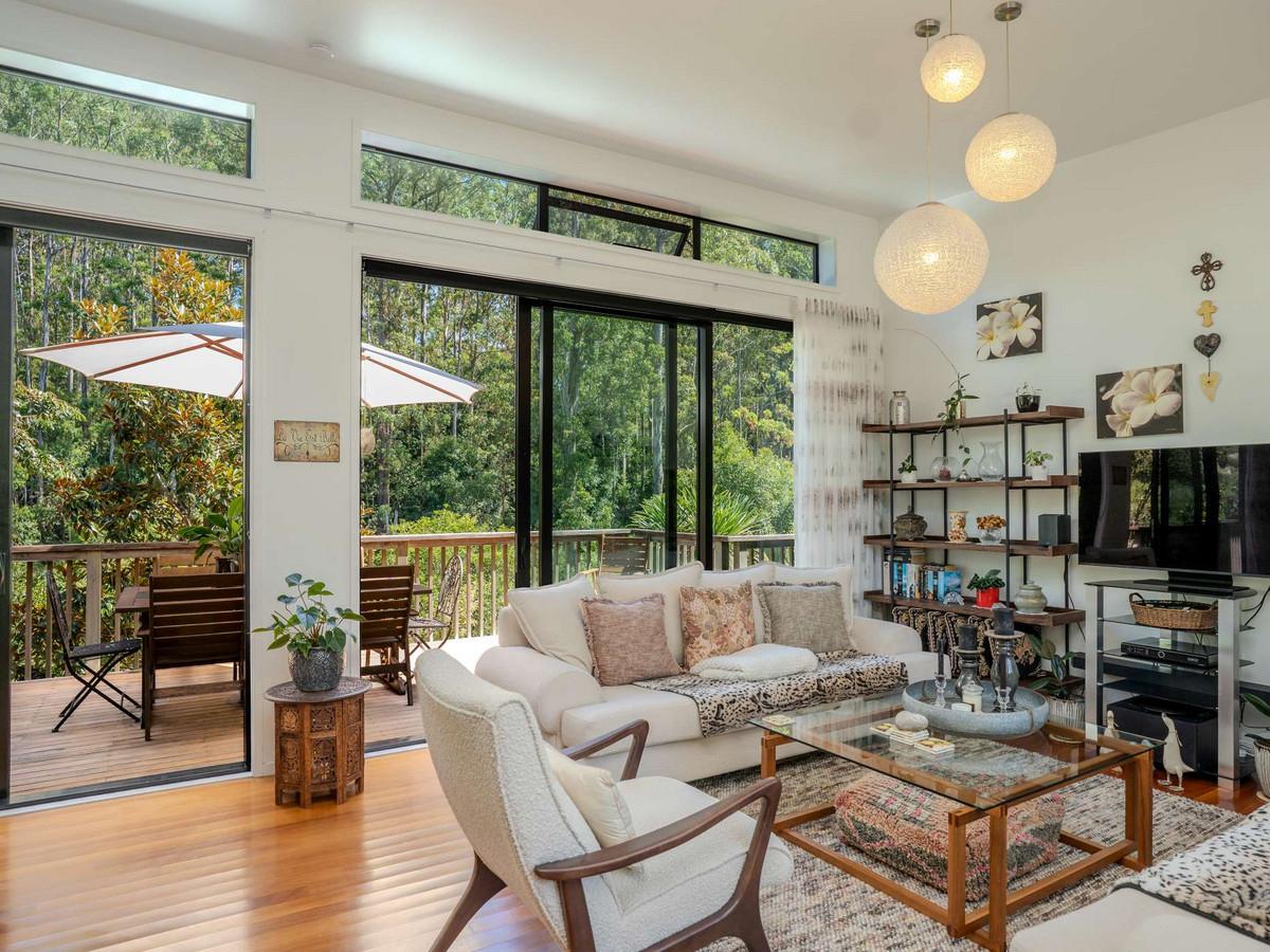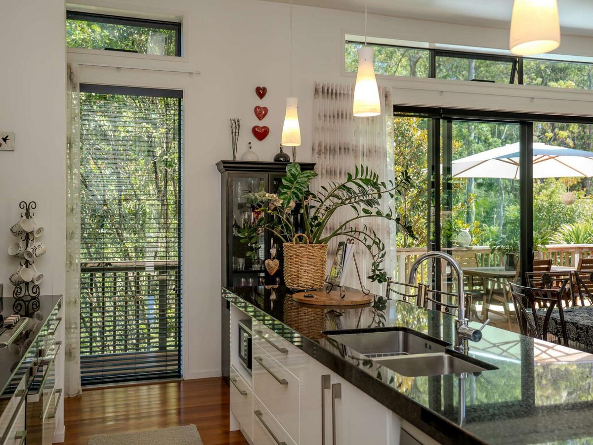 The large open plan living is full of light, with large windows on two sides, you get the feeling of sitting in the bush and it certainly sets this home apart from the everyday town residence.