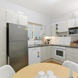 - Ergonomic eat-in kitchen with near-new appliances, plus a bathroom/laundry with checkerboard flooring