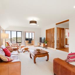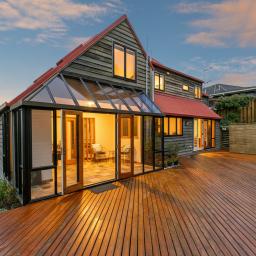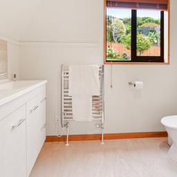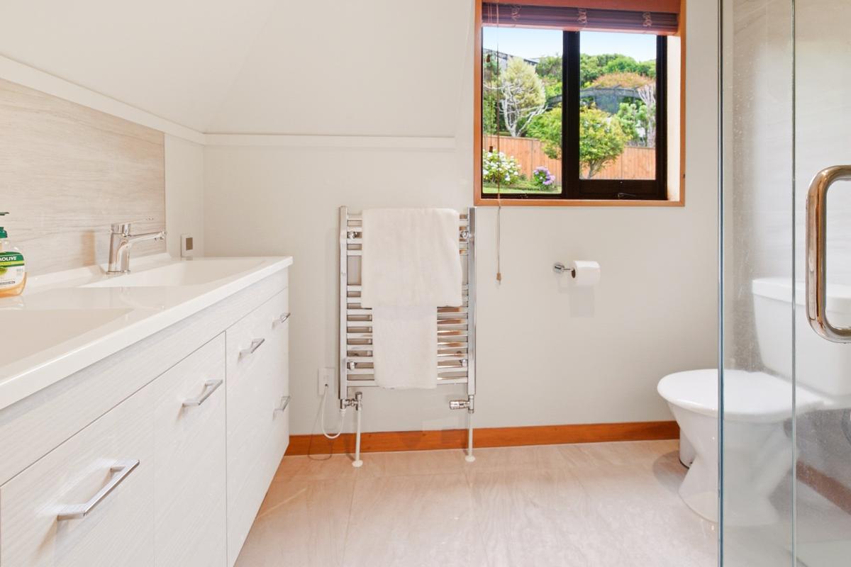 - Designed for warmth, comfort and natural light, featuring radiator central heating throughout, polished floorboards, rimu joinery, extensive glazing, and underfloor heating in both the main bathroom and master ensuite