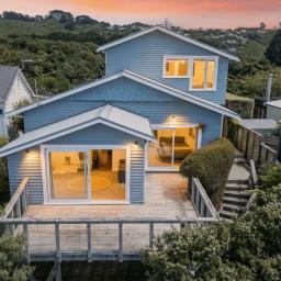 - A stunning outlook with wraparound decking, positioned to maximise sun and scenery - wake to dawn breaking over the city, harbour and Mount Victoria, then enjoy sunset BBQs in the sheltered backyard with flat lawn and al fresco entertaining space