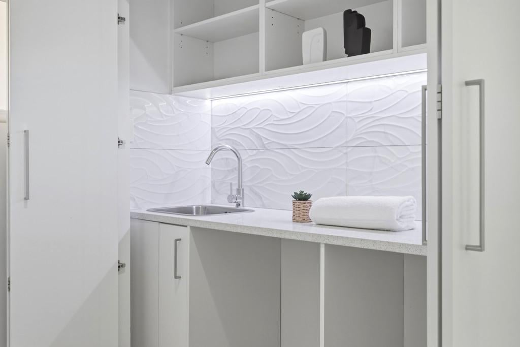 Three well-proportioned bedrooms are complemented by two toilets and a beautifully appointed bathroom complete with LED mirror. LED strip lighting throughout the home, including the laundry, adds a refined modern touch. Insulation in both the ceiling and underneath the home further enhances comfort year-round.