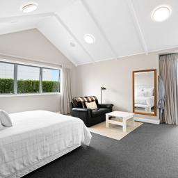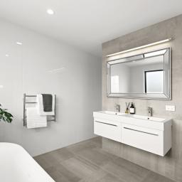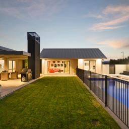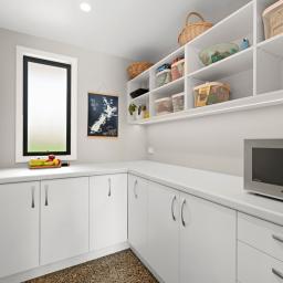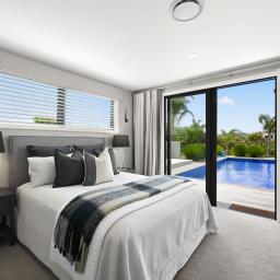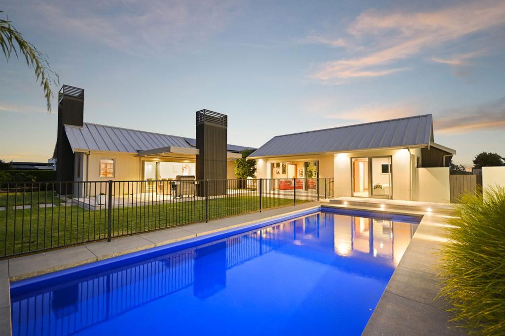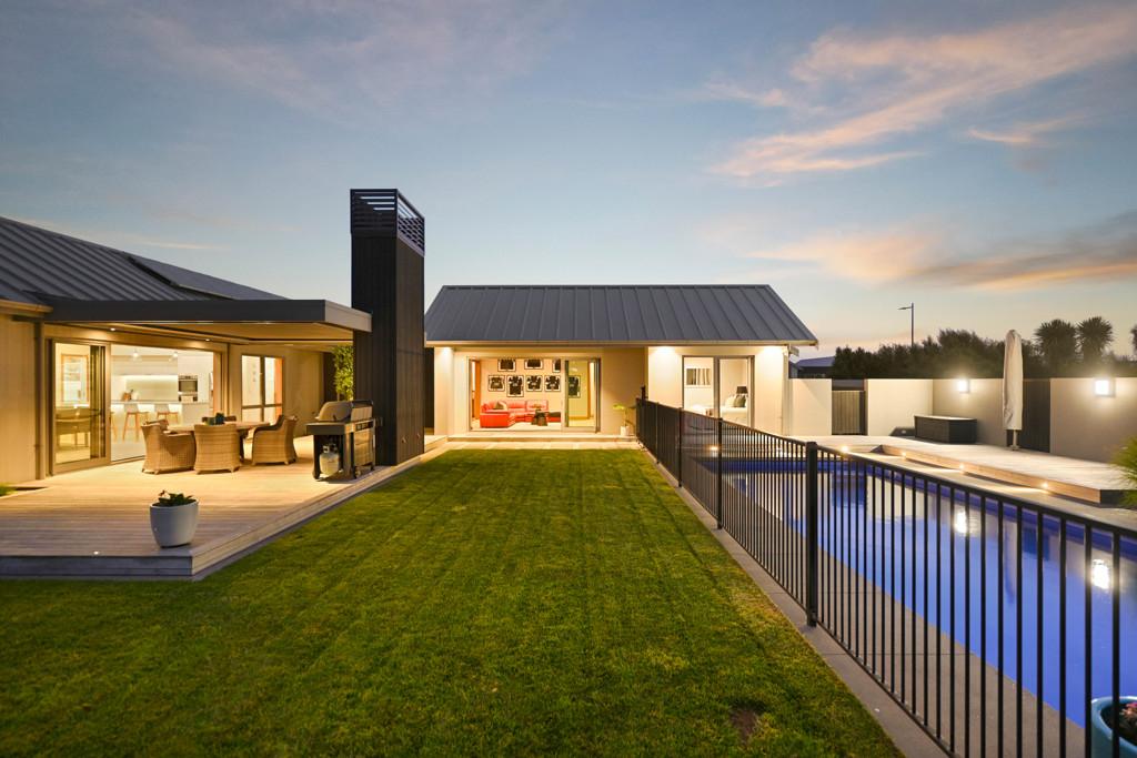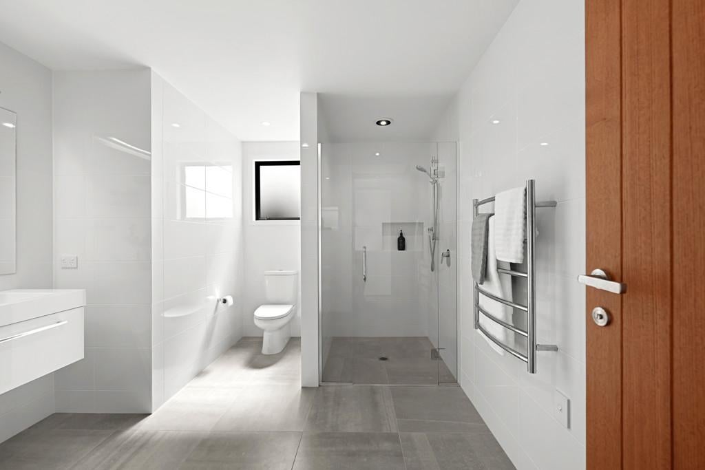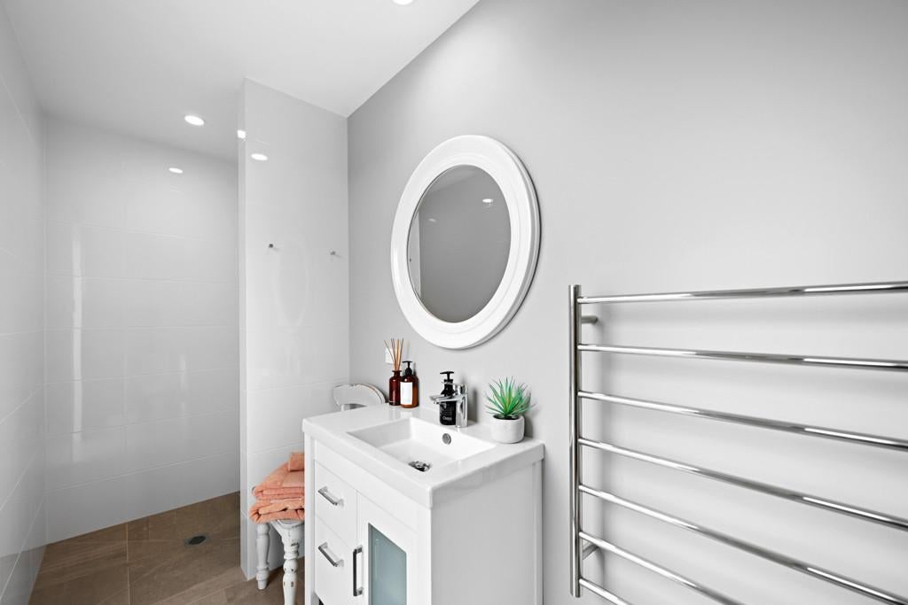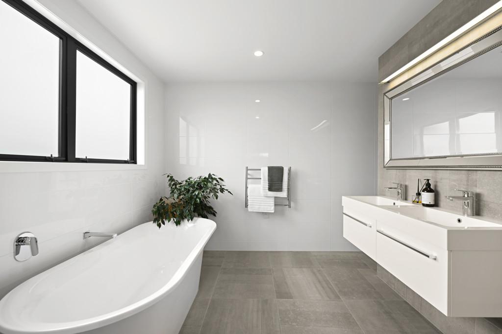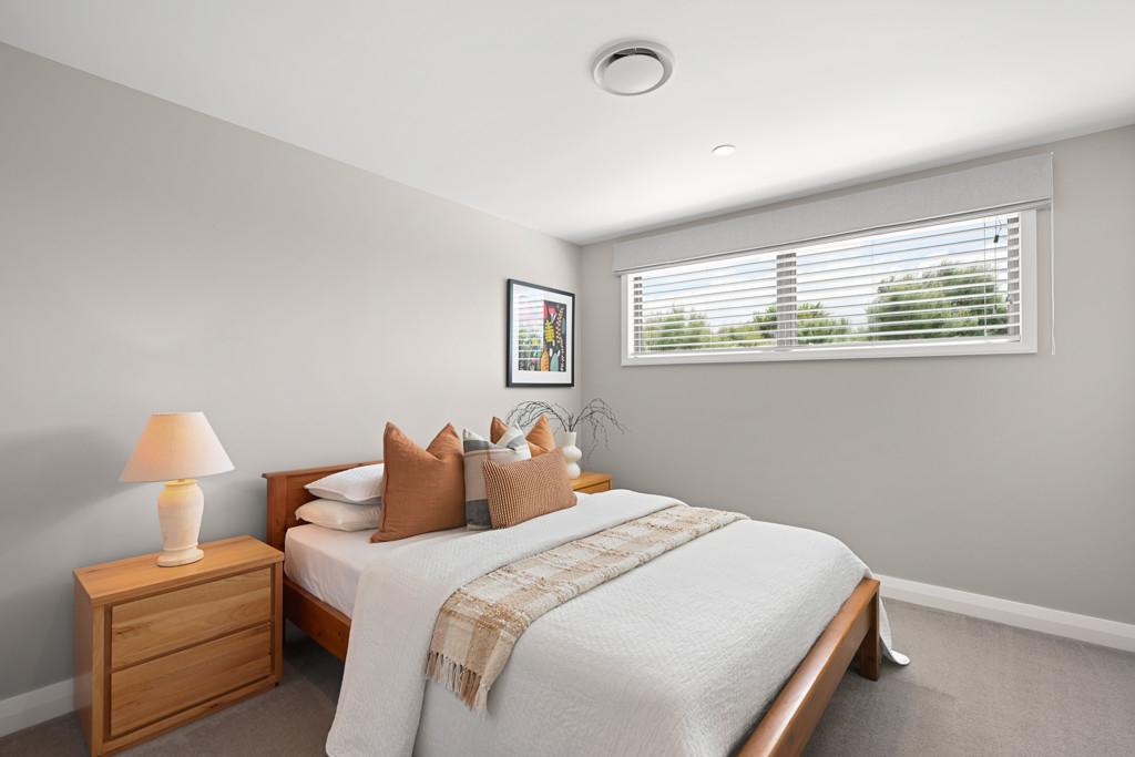 Polished concrete floors with underfloor heating through the main hallways and kitchen, oversized Victorian Ash high-stud doors, and architraves further elevate the sense of sophistication and scale.