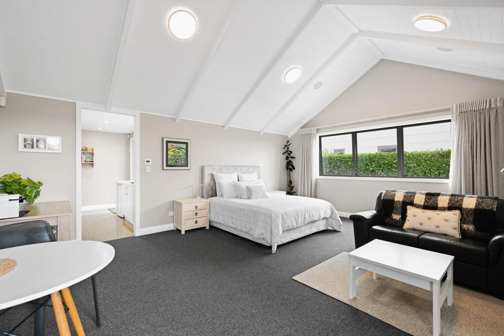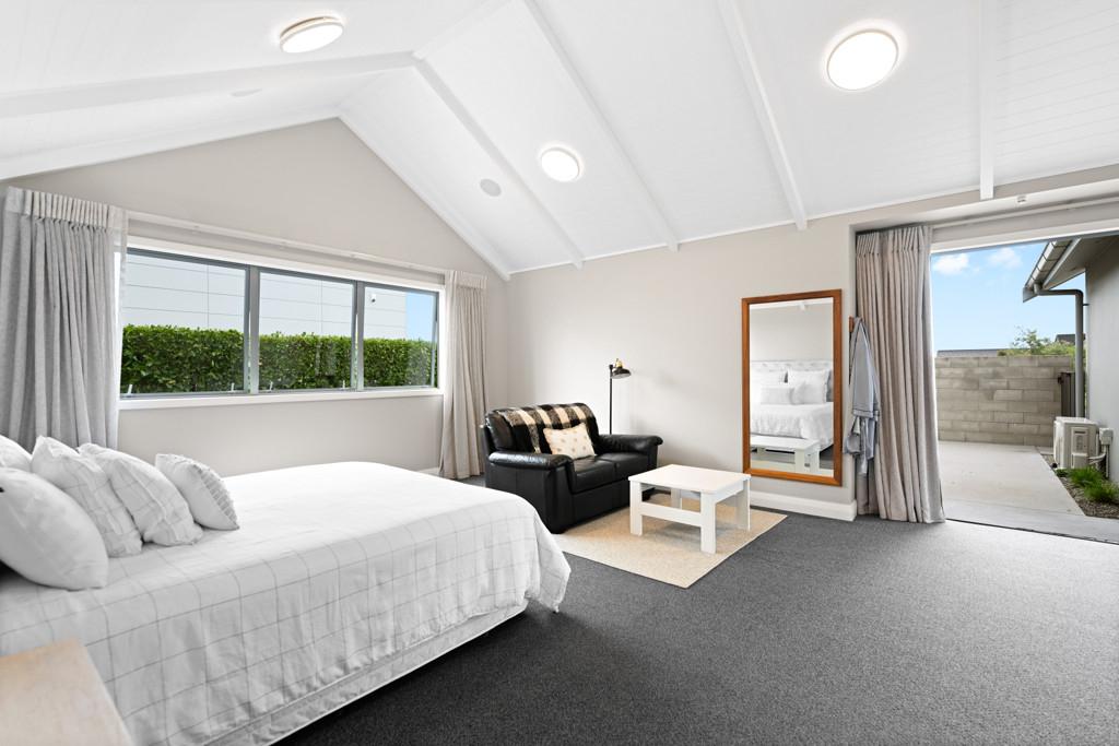 In the opposing wing, a substantial multi-purpose room, currently operating as a successful Airbnb offers its own private bathroom and shower. This highly versatile space would equally suit a home office, guest retreat, gym, or Pilates studio. Outdoors, the swimming pool forms a stunning focal point, surrounded by meticulously landscaped grounds that evoke a true resort-style ambience. Palm trees and distinctive fluted chimneys add architectural flair, enhancing the individuality of this bespoke property. Raised vegetable gardens provide ample opportunity for homegrown produce, perfectly complementing a self-sustainable lifestyle.