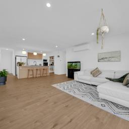 At the heart of the home is a light-filled open plan kitchen, dining, and living area, ideal for effortless entertaining and everyday life. The contemporary kitchen boasts quality appliances, generous bench space, and a walk-in pantry for excellent storage. A second separate living area provides flexibility — perfect as a media room, formal lounge, or kids' retreat.