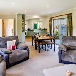 The open-plan kitchen, dining, and living area is the heart of the home - spacious, light-filled, and designed for connection. The kitchen offers ample storage, gas cooking, and easy access to the outdoor entertaining areas through multiple doors, making indoor-outdoor flow effortless.