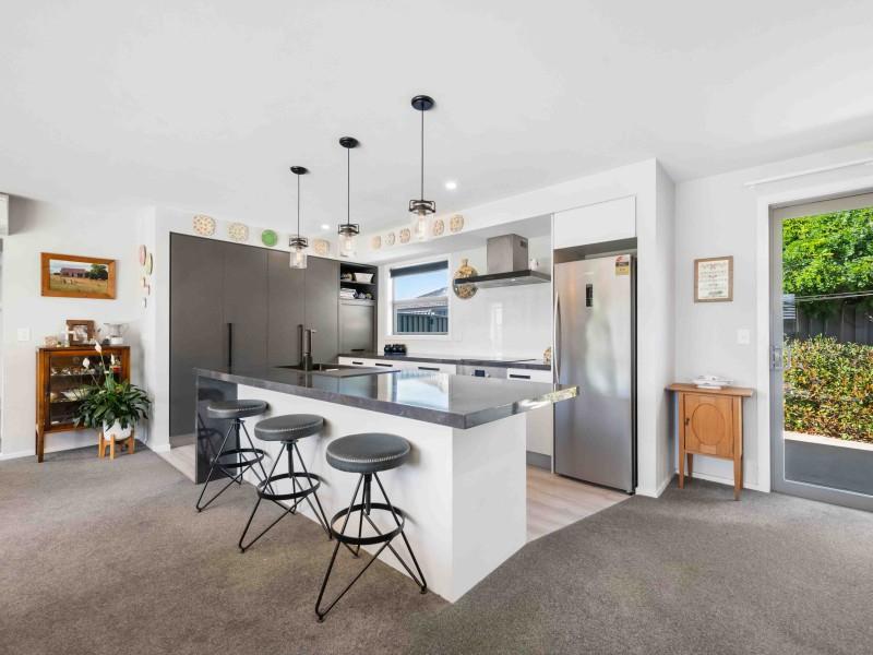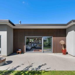 The modern kitchen anchors the home with sleek finishes, an induction hob and generous storage, flowing seamlessly into open-plan dining and a light-filled lounge. Designed for both relaxed everyday living and easy entertaining, the layout connects effortlessly to two private courtyard spaces. With three well-proportioned bedrooms and excellent storage - purchasers will love the primary suite that opens to a paved patio and features a tiled ensuite with walk-in shower. A stylish tiled family bathroom and separate toilet add practicality, while year-round comfort is assured with a wood burner, heat pump and the added convenience of a water softener, ensuring less cleaning and better-quality water throughout the home.