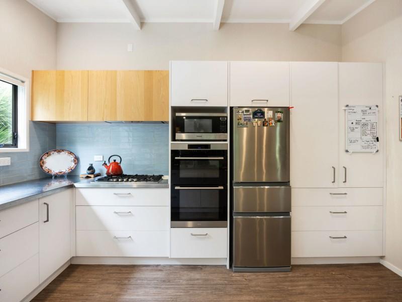 Inside, the kitchen and bathrooms have been thoughtfully upgraded over the years. The kitchen features a stainless steel bench, while the living area is warmed by a gas fire — creating a welcoming heart of the home.