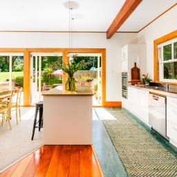 - Open-plan kitchen/dining/living with scullery, separate laundry, gas heating and a heatpump