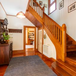 - Striking leadlight windows, matai flooring, and a grand central staircase
