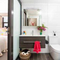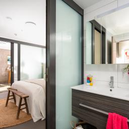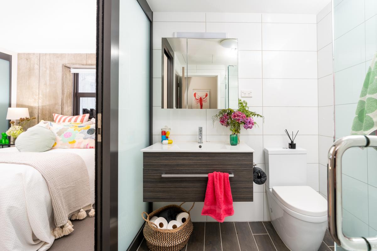 The bedroom is generously sized, the bathroom sleek and modern, and the overall layout feels well resolved and comfortable for everyday living.
