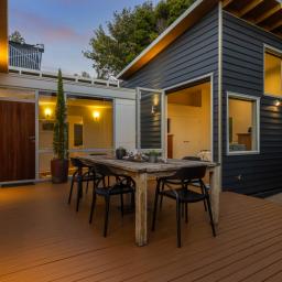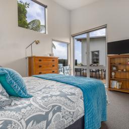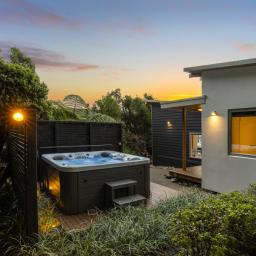 The expansive lounge forms the heart of the home, opening seamlessly to a west-facing deck where afternoons stretch into golden evenings. Yet what truly sets this property apart is its flexibility: four distinct outdoor areas allow you to follow - or retreat from - the sun at any time of day or season. Morning coffee in shelter. Afternoon warmth on the deck. Evening drinks as the light softens. Spa under the stars.